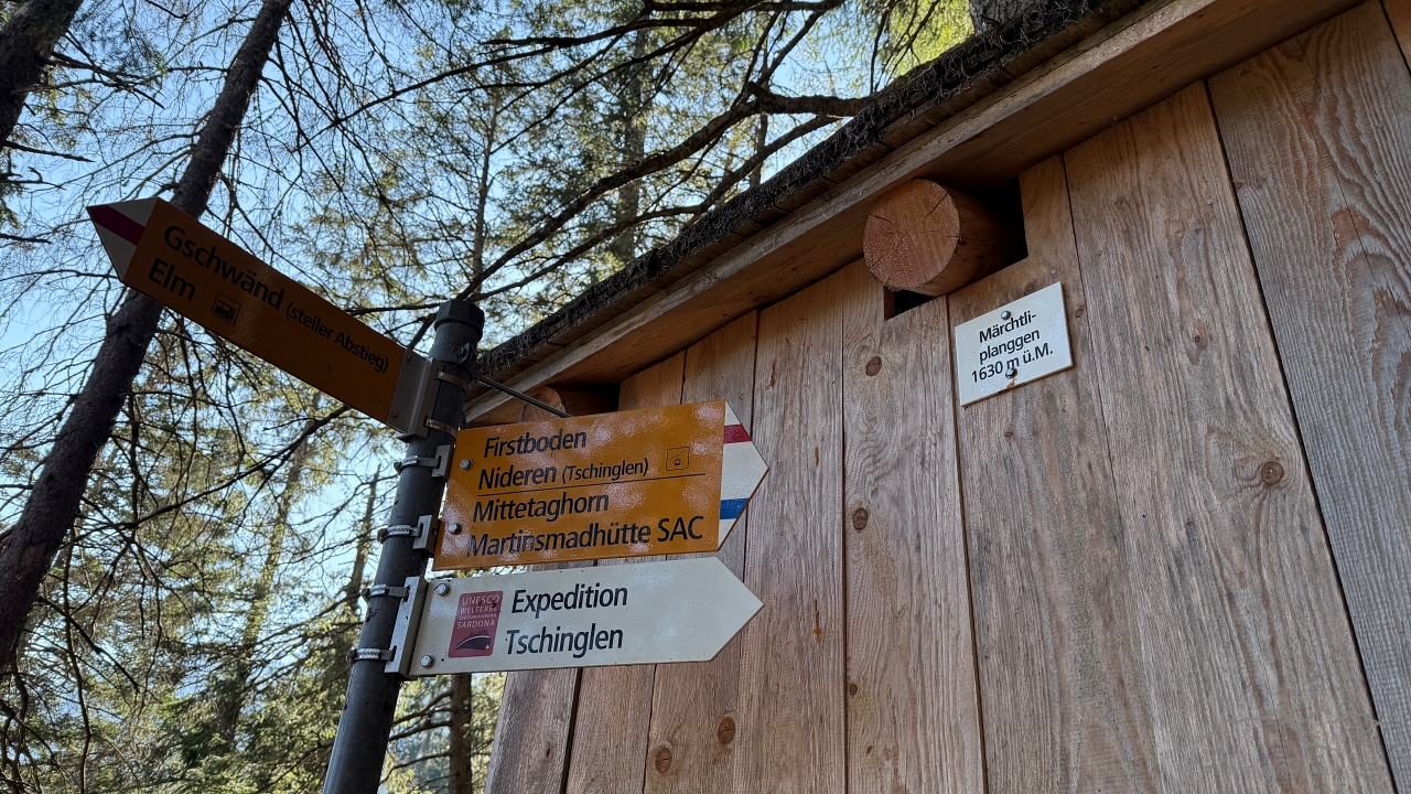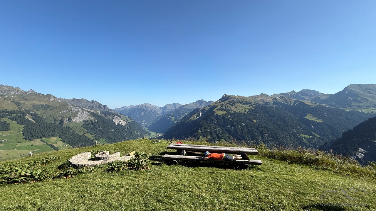 Das MaeniMobil bei der Talstation der Sportbahnen Elm parkiert und schon konnte unser Reisli losgehen. Effizient und wunderschön geht es durch den Wald hoch auf den Firstboden, welcher mit schöner Grillstelle und noch schönerer Aussicht auf Berg und Tal aufwartet. Das Martinsloch hat man hier sozusagen vor der Nase...also fast...auf jeden Fall ist des DER Blickfang.