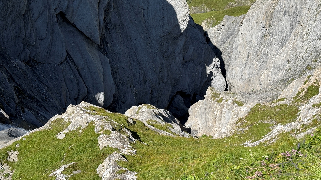 Im Abstieg legen wir weiter unten nochmals eine Pause ein, um noch etwas in der Sonne zu liegen und die verschwitzten Shirts schon etwas zu trocknen. Bei diesem Stopp sollte es nicht bleiben, kurz vor der Hütte noch einen Schwenker an den Tschinglenbach, wo wir uns frisch machen und die Füsse ein wohltuendes Bad erhalten. Nun aber ab zur Hütte...das Plättli wartet.