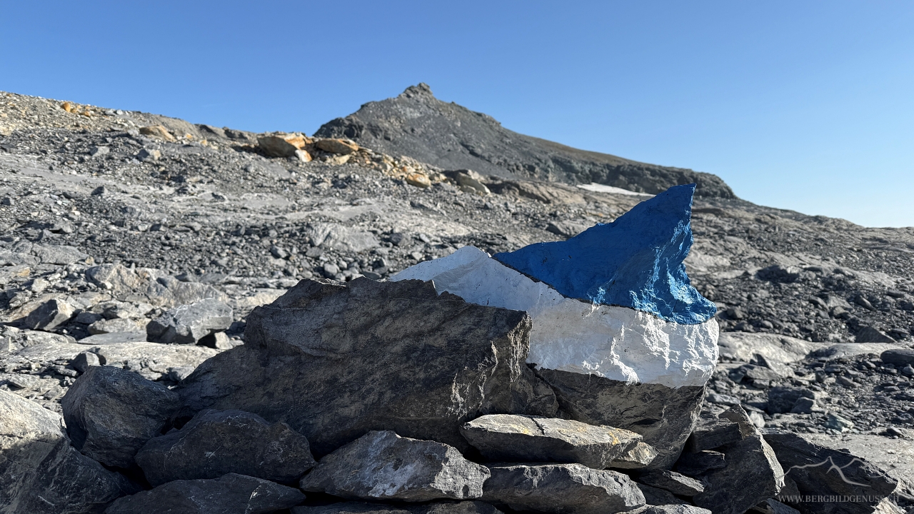 Je näher wir den Vorabs kommen, umso mehr Zeichen des winterlichen Skibetriebs tauchen auf...Beförderungsanlagen, Snowfarming, planiertes Gelände und einiges an herumliegendem Gerümpel trüben die Begeisterung über die geniale Landschaft dann doch etwas...irgendwie wirkt hier alles so zurückgelassen...oder sind es die letzten Versuche, die Anlagen auf dem schwindenden Vorabgletscher zu erhalten? Wie auch immer - nach dem Glarner stehen wir auch auf dem Bündner Vorab, von dessen Gipfel aus wir unseren Weiterweg gut einsehen können. Jaaa...wir sind noch nicht am Ziel...da liegen noch einige Meter vor uns...immerhin meistens im Abstieg.